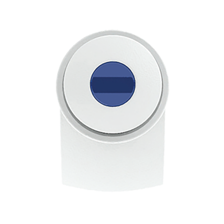 Maxema Kugelschreiber DOT D1 MATT B mit mattweißem Gehäuse, Clip und Drücker, glänzend farbigem Element im mattweißen Drücker. Ausgestattet mit einer Jumbo-Mine mit blauer Dokumental-Tinte für bis zu 2.500 Meter Schreibvergnügen. Gehäuse und Element im Drücker sind in nicht weniger als 20 Farben erhältlich, die pro Komponente ab 2.000 Stück untereinander kombiniert werden können.