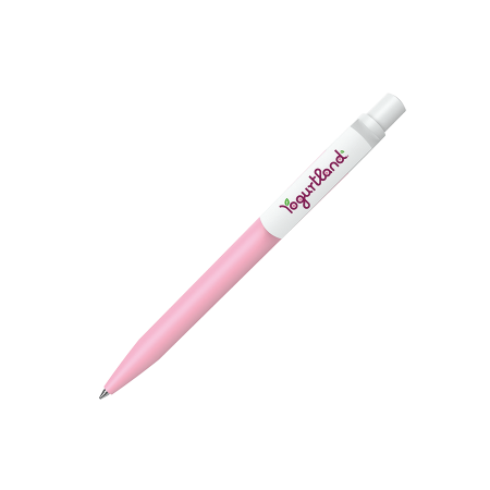 Maxema DOT D1 MATT CB Kugelschreiber mit mattem Gehäuse, mattweißem Clip und einem glänzenden Farbelement im mattweißen Druckknopf. Ausgestattet mit einer Jumbo-Mine mit blauer Dokumental-Tinte für bis zu 2.500 Meter Schreibvergnügen. Die Gehäuse und das Element im Druckknopf sind in nicht weniger als 20 Farben erhältlich, die ab einer Mindestbestellmenge von 2.000 Stück pro Komponente miteinander kombiniert werden können.