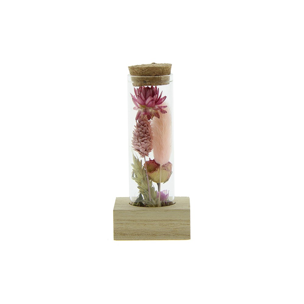Ein kompaktes und elegantes Geschenk mit nachhaltiger Wirkung: Diese Variante enthält ein einzelnes Glasröhrchen, gefüllt mit lang haltbaren Trockenblumen in Farben passend zu Ihrer Marke. Das Röhrchen steht sicher auf einem Holzsockel, der mit einem Logo, Namen oder kurzer Botschaft personalisiert werden kann.
