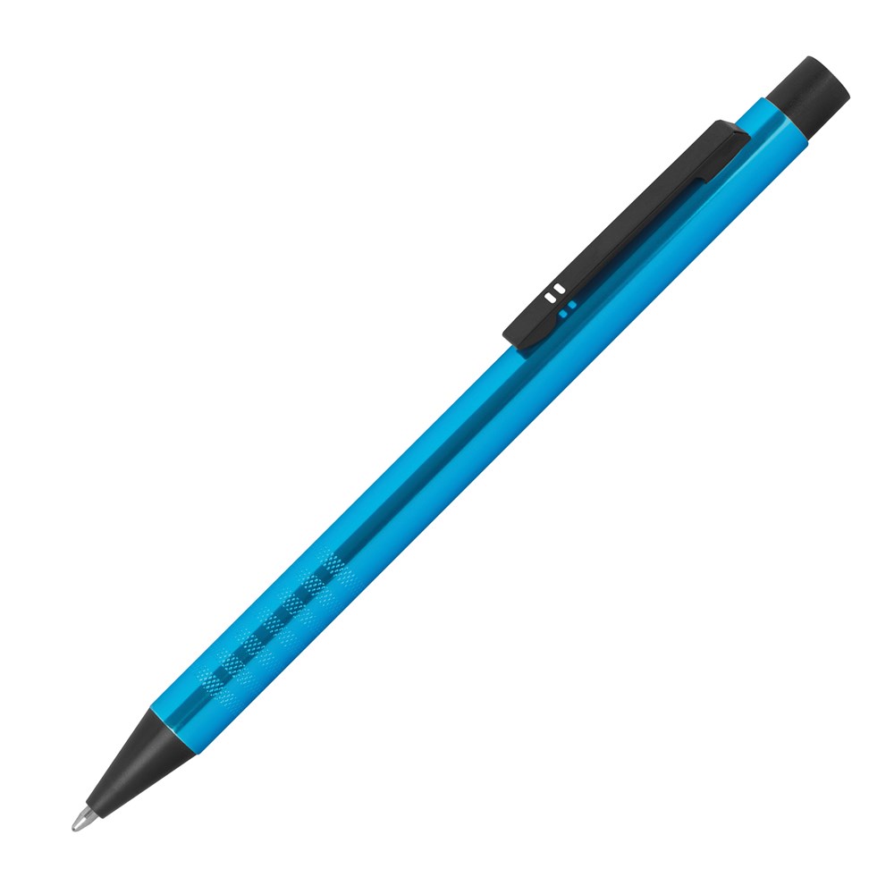 Unser hochwertiger Druckkugelschreiber aus Metall bietet nicht nur ein erstklassiges Schreiberlebnis, sondern auch ein extravagantes Design, das Ihre Marke stilvoll repräsentiert. Mit einer blau schreibenden Mine und einer Lasergravur Ihrer Werbung rechts vom Clip ist dieser Kugelschreiber ein elegantes Werbemittel.