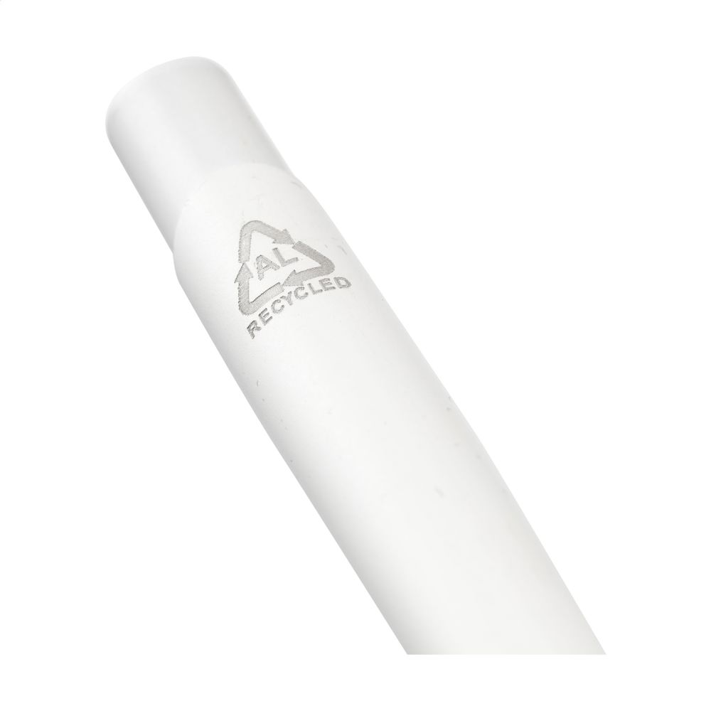Blau schreibender Kugelschreiber mit einem Gehäuse aus 100% recyceltem Aluminium. Mit Metallclip, Kunststoffspitze und Druckknopf. RCS-zertifiziert. Durch die Verwendung von recyceltem Aluminium werden bei der Herstellung dieses Produkts weniger neue Rohstoffe verwendet. Das bedeutet weniger Energieverbrauch und weniger Wasserverbrauch.