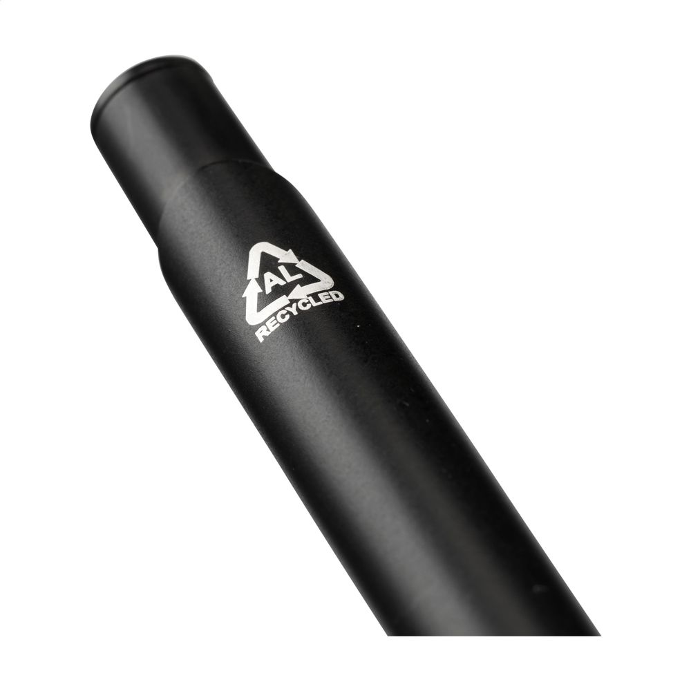 Blau schreibender Kugelschreiber mit einem Gehäuse aus 100% recyceltem Aluminium. Mit Metallclip,... mehr