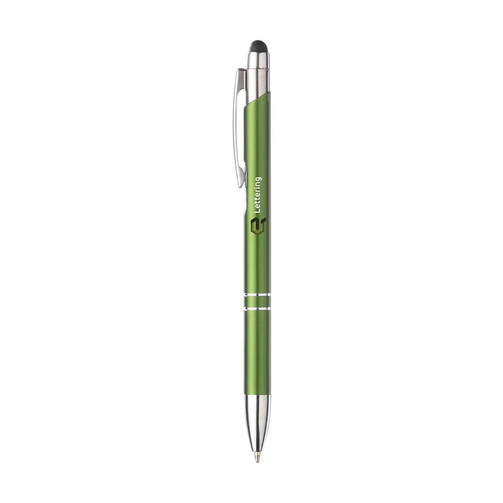 Blauschreibender Kugelschreiber mit Aluminiumgehäuse, gummierte Spitze zum Bedienen von... mehr