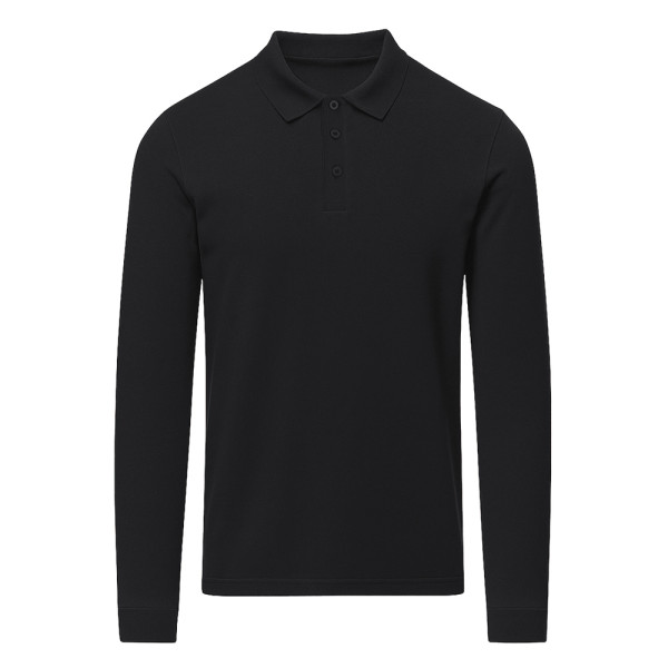 Unisex Langarm-Poloshirt aus Piquéstoff. Kragen und Bündchen in 1x1 Ripp mit Elasthan für besseren Sitz und Komfort. Dreiknopf-Leiste in passender Farbe und verstärktes Nackenband.