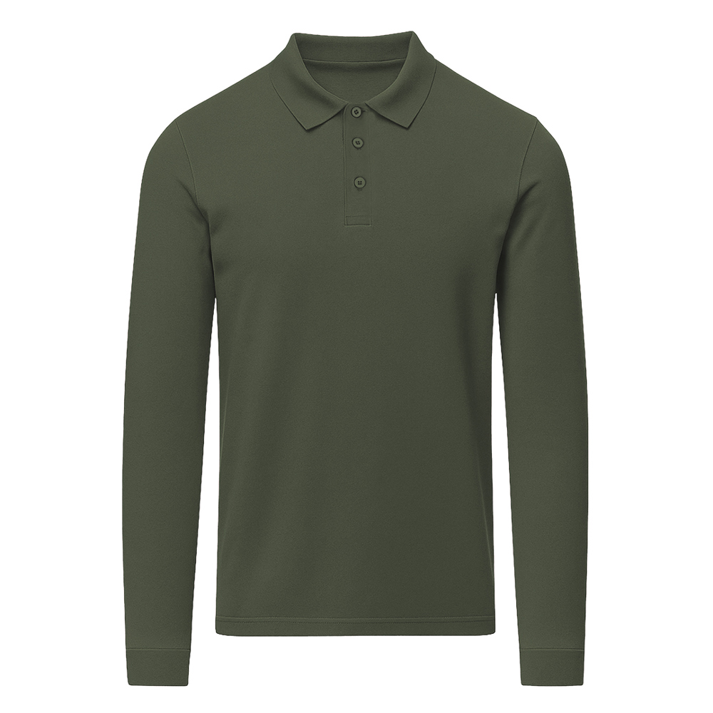 Unisex Langarm-Poloshirt aus Piquéstoff. Kragen und Bündchen in 1x1 Ripp mit Elasthan für besseren Sitz und Komfort. Dreiknopf-Leiste in passender Farbe und verstärktes Nackenband.