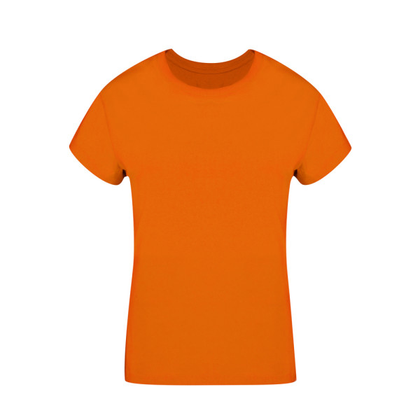 Damen-T-Shirt. Aus glattem Jersey, 100% Baumwolle, im Single-Jersey-Stil mit einem Gewicht von 160g/m². Weiches Gefühl und moderner Schnitt, mit Seitennähten. Schmaler Rundhalsausschnitt aus 1x1-Rippstrick. Doppelnähte an Saum und Ärmeln für erhöhte Langlebigkeit und Widerstandsfähigkeit bei intensivem Gebrauch. Leicht abnehmbares Etikett. Erhältlich in einer breiten Palette von modischen Farben und in den Größen S, M, L, XL und XXL.