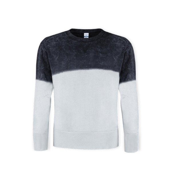 Zweifarbiges Unisex-Sweatshirt mit gewaschenem und gefärbtem Effekt auf dem Kleidungsstück, der jedes Stück einzigartig und unwiederholbar macht. Hergestellt aus 100% gekämmter Baumwolle 280g/m2. Weicher Griff und moderner Schnitt. Extra breite, elastische Bündchen an Ärmeln und Saum für einen perfekten Sitz. Schmaler 2x2 gerippter Rundhalsausschnitt. Doppelte Nähte für Haltbarkeit und Widerstandsfähigkeit bei starker Beanspruchung. Leicht ablösbares Etikett. Erhältlich in den Größen XS, S, M, L, XL und XXL.