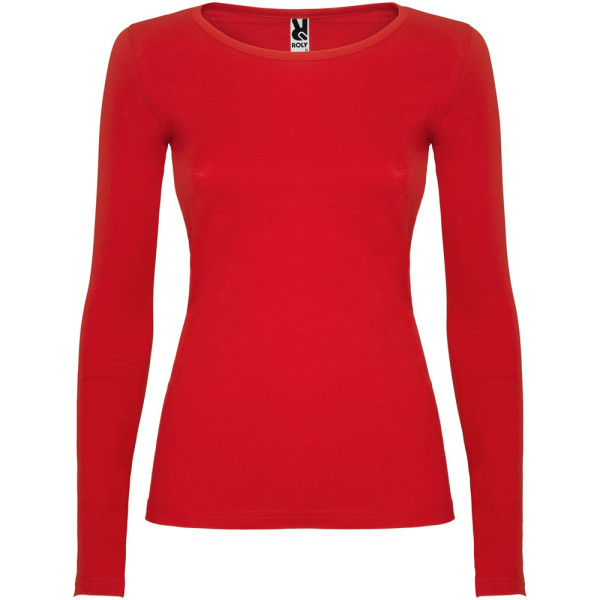 Langärmeliges, halb tailliertes T-Shirt mit feinem Halsbündchen. Keine Ärmelbündchen. Seitennähte. Herausnehmbares Etikett.