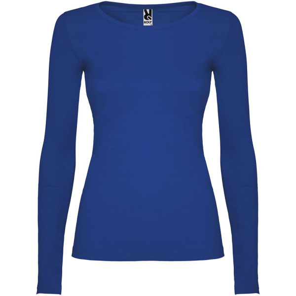 Langärmeliges, halb tailliertes T-Shirt mit feinem Halsbündchen. Keine Ärmelbündchen. Seitennähte. Herausnehmbares Etikett.