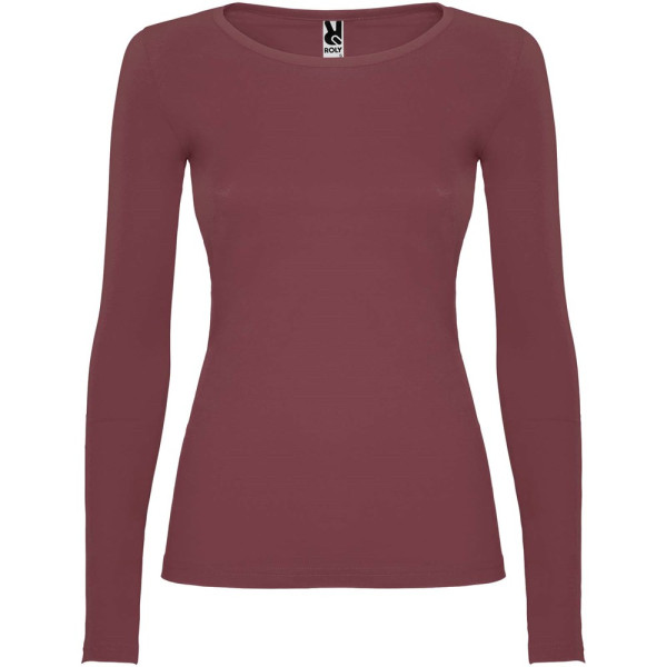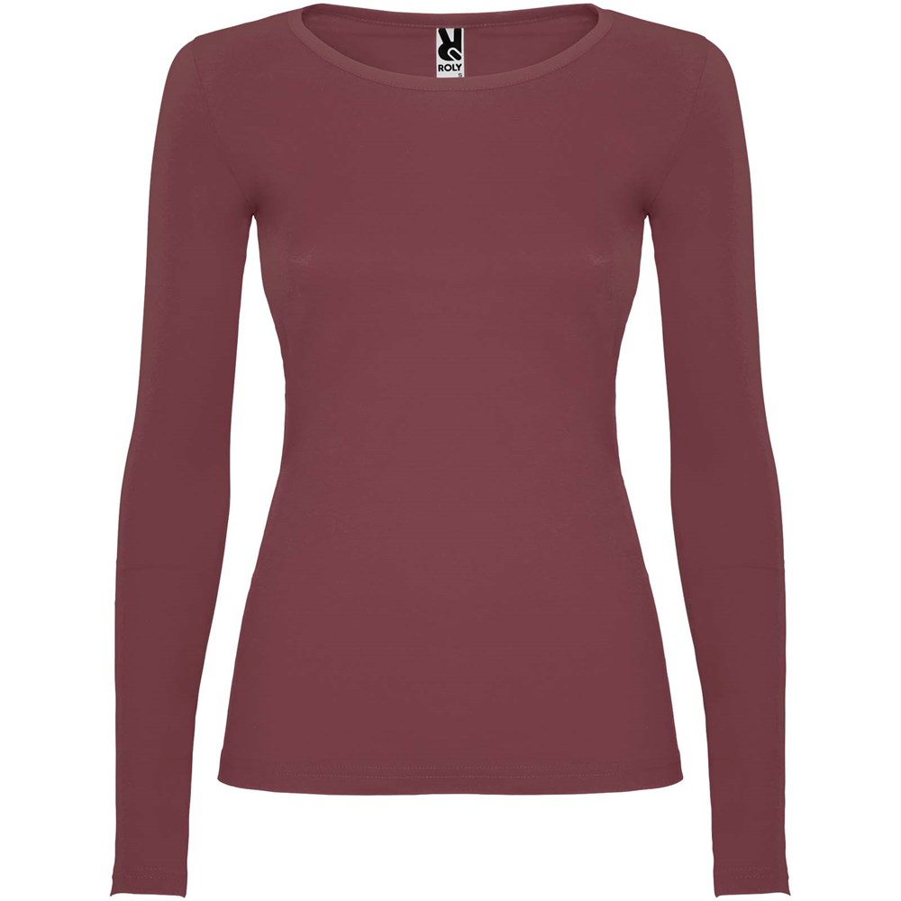 Langärmeliges, halb tailliertes T-Shirt mit feinem Halsbündchen. Keine Ärmelbündchen. Seitennähte. Herausnehmbares Etikett.