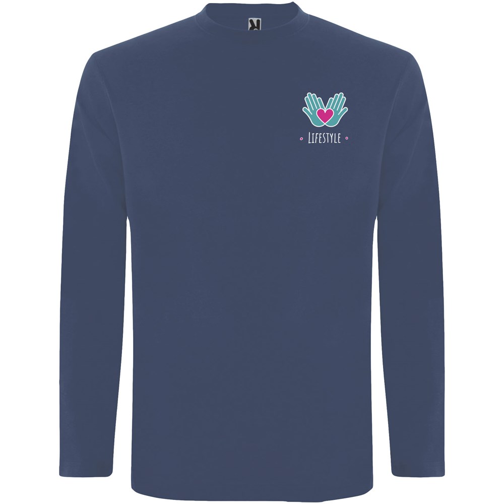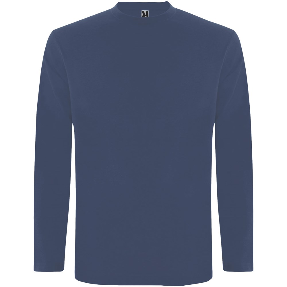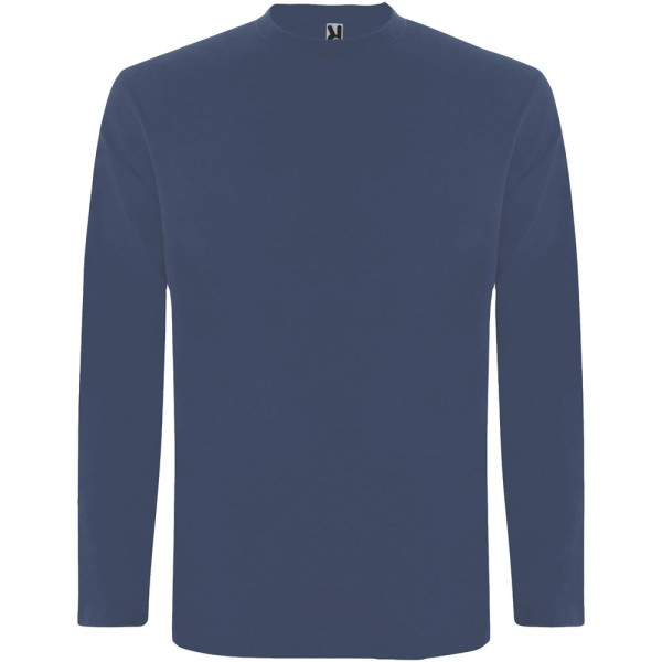 Langärmeliges Shirt aus Schlauchgewebe mit Rundhalsausschnitt aus 4 Schichten. Verstärkte Nähte an Kragen und Schultern. Keine Ärmelbündchen. Herausnehmbares Etikett. Schlauchdesign in Erwachsenengrößen und Seitennähte in Kindergrößen. Das Modell ist 185 cm groß und trägt Größe L.
