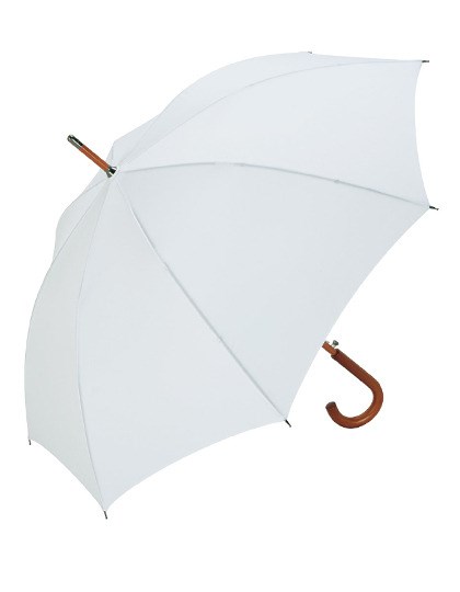 Komfortable Automatik-Funktion zum schnellen Öffnen | Windproof-Features für höhere Gestell-Flexibilität und bessere Windsicherheit | Flexible Fiberglasschienen | Massiver Echtholzstock | Rundhakengriff und Top aus Echtholz | Farbe White für den Sublimationsdruck geeignet