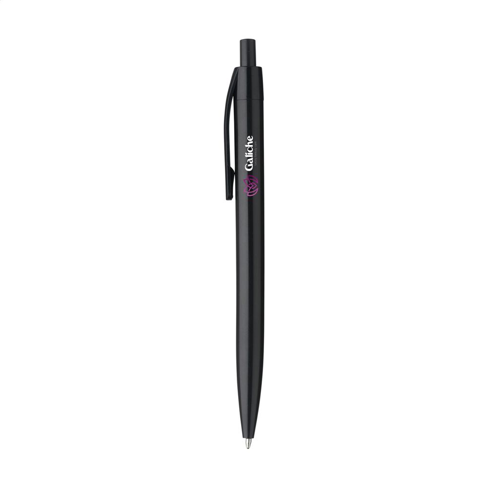 Blauschreibender Kugelschreiber mit einteiligem Gehäuse. Sehr gut geeignet für einen großzügigen Aufdruck.