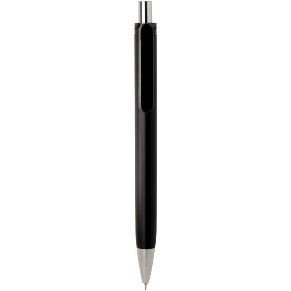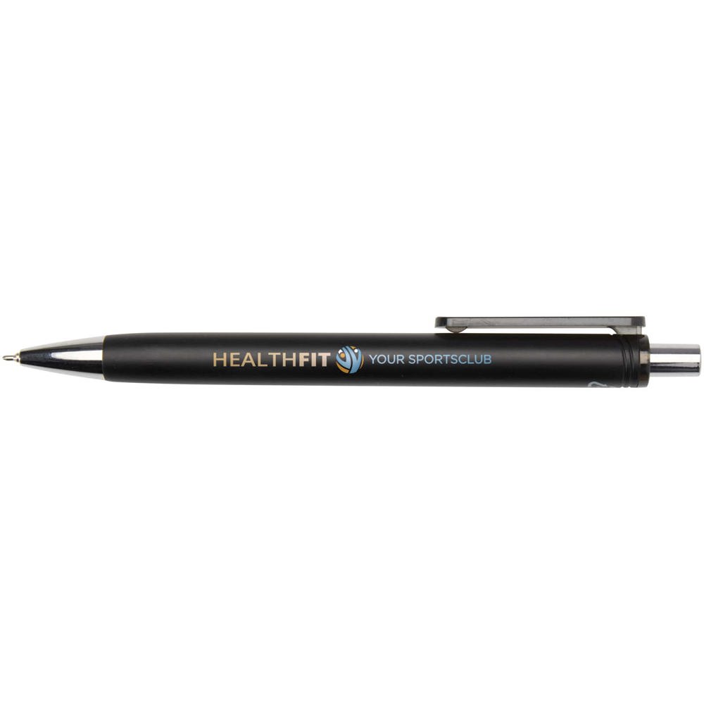 Der Feld Kugelschreiber mit Metallic Finish verbindet Alltagstauglichkeit mit einem eleganten Look. Er besteht aus RCS zertifiziertem recyceltem ABS Kunststoff und verfügt über ein glänzendes Metallic Finish mit polierten Chromakzenten. Sein leichtgängiger Druckmechanismus und die Semi Gel Tintenmine sorgen für ein angenehmes und flüssiges Schreibgefühl. Farbe der Stiftmine: schwarz. Schreiblänge: 500 m. Schreibspitze: 0,7 mm.