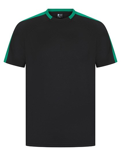 Single Jersey | Unisex | Eigenmaterial-Ärmeleinsätze in Kontrastfarbe | Sportliche Passform | Die ableitende Oberfläche sorgt für Feuchtigkeitsregulierung | Schnell trocknend und atmungsaktiv | 2-teiliger Kragen aus Eigenmaterial in Kontrastfarbe | Raglan-Schulter | Abreißetikett