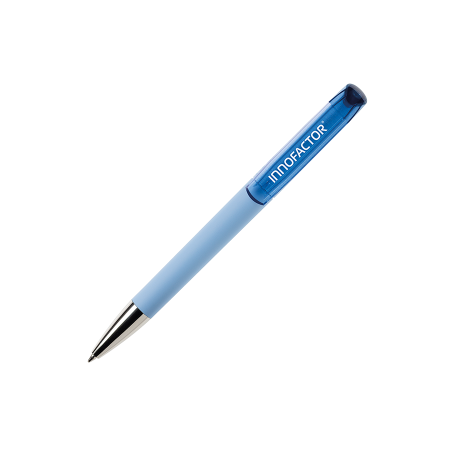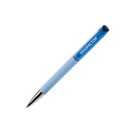 FLOW F1 GOM 30 CR Kugelschreiber Maxema, gummiertes Gehäuse in deckenden Farben, texturierte Kappe in deckenden Farben mit Seidenmatt-Finish, Clip in glänzenden transparenten Farben, Spitze verchromt, blauschreibend