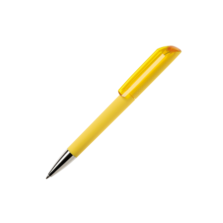 FLOW F1 GOM 30 CR Kugelschreiber Maxema, gummiertes Gehäuse in deckenden Farben, texturierte Kappe in deckenden Farben mit Seidenmatt-Finish, Clip in glänzenden transparenten Farben, Spitze verchromt, blauschreibend