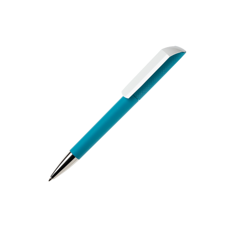 FLOW F1 GOM CB CR Kugelschreiber Maxema, deckende Farben, gummiertes Gehäuse, strukturierte Kappe mit Seidenmatt-Finish, Clip in glänzendem Weiß, Spitze verchromt, blauschreibend
