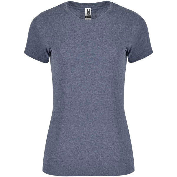 T-Shirt mit meliertem Effekt. Tailliertes Design. Rundhalsausschnitt aus 1×1-Rippstrick mit innenliegenden, verstärkten und verdeckten Nähten. Schlauchförmiger Stoff. Abnehmbares Etikett.