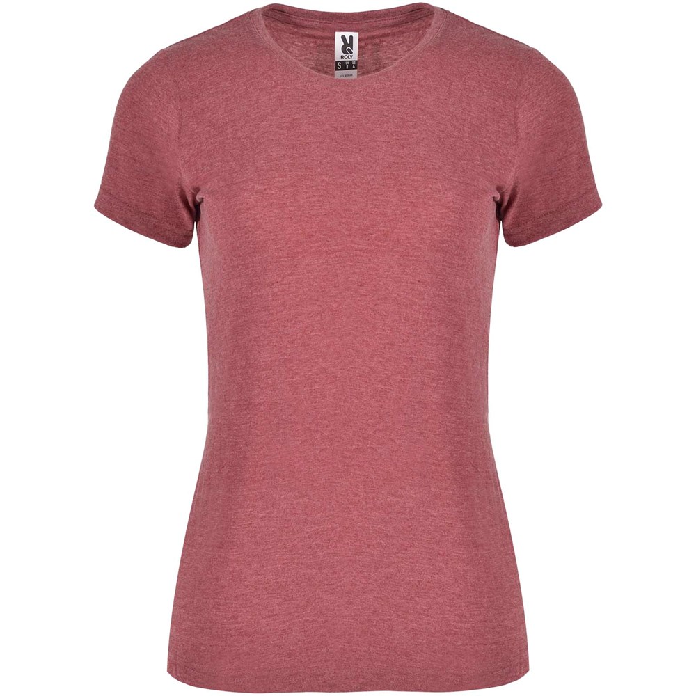 T-Shirt mit meliertem Effekt. Tailliertes Design. Rundhalsausschnitt aus 1×1-Rippstrick mit innenliegenden, verstärkten und verdeckten Nähten. Schlauchförmiger Stoff. Abnehmbares Etikett.