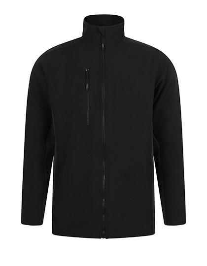 Moderne, 2-lagige Softshell-Jacke für Damen und Herren, mit Microfleece auf der Innenseite | Moderne Details wie kontrastierende, melierte Stretchseitenbahnen und mittiger Reißverschluss mit rutschfestem Schieber, verdeckte Reißverschluss-Taschen an den Seiten, Brusttasche, gebogener Saum, Abnäher an der Schulter und tiefe Innentasche für Telefon und Zubehör | Heraustrennbares Henbury-Etikett für einfaches Rebranding | Atmungsaktiver Einsatz an der Seite für zusätzlichen Komfort