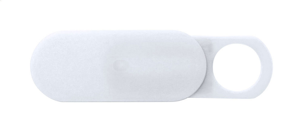 Webcamblocker aus Kunststoff mit Schiebeabdeckung und selbstklebender Rückseite.