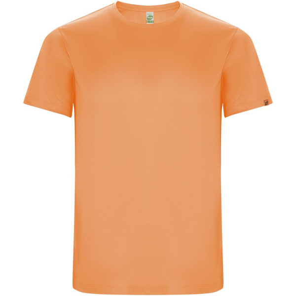 Funktions-T-Shirt aus recyceltem Polyester CONTROL DRY. Rundhalsausschnitt mit farblich abgesetzten Nähten. ECO-Logo-Etikett am Ärmel. Verpackung aus Recyclingmaterial. Herausnehmbares ECO-Etikett. Verpackung aus Recyclingmaterial. Technisches Gewebe. Das Modell ist 115 cm groß und trägt Größe 5/6.