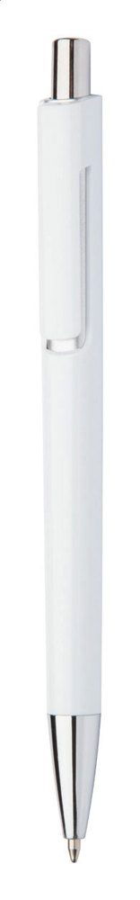 Kunststoff-Kugelschreiber mit farbigem Schaft und verchromten Elementen, blauschreibend.