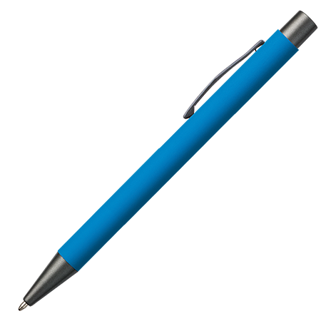 Der JAMAICA Metall-Kugelschreiber hat ein stilvolles Rubber-Finish und ist mit anthrazitfarbenen Details (Drücker, Clip und Spitze) versehen. Der Stift kann mit Lasergravur personalisiert werden und ist blauschreibend.