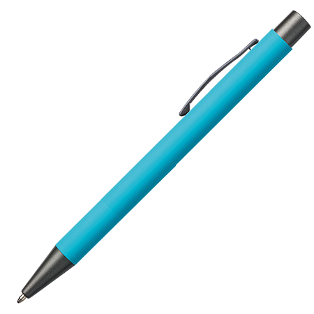 Der JAMAICA Metall-Kugelschreiber hat ein stilvolles Rubber-Finish und ist mit anthrazitfarbenen Details (Drücker, Clip und Spitze) versehen. Der Stift kann mit Lasergravur personalisiert werden und ist blauschreibend.