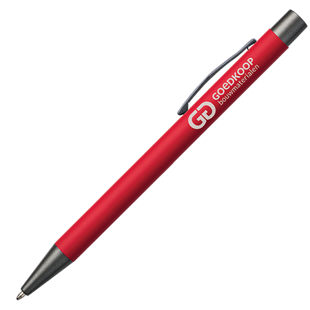 Der JAMAICA Metall-Kugelschreiber hat ein stilvolles Rubber-Finish und ist mit anthrazitfarbenen Details (Drücker, Clip und Spitze) versehen. Der Stift kann mit Lasergravur personalisiert werden und ist blauschreibend.
