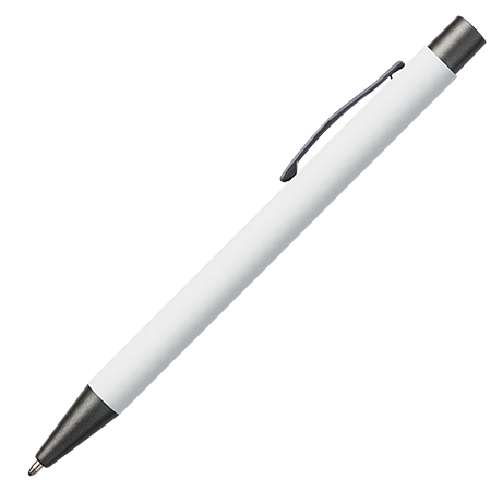 Der JAMAICA Metall-Kugelschreiber hat ein stilvolles Rubber-Finish und ist mit anthrazitfarbenen Details (Drücker, Clip und Spitze) versehen. Der Stift kann mit Lasergravur personalisiert werden und ist blauschreibend.