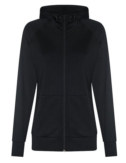 Slim Fit und | Mischgewebe von AWDis mit Elasthan für hohen Tragekomfort und hervorragende Passform | Feuchtigkeitsableitendes, schnell trocknendes Material | Durchgehender Reißverschluss an der Vorderseite | Ärmel in melierter Kontrastfarbe | Kängurutasche | Hinten verlängerter Saum | Kapuze mit verstellbaren Knebeln | Daumenöffnungen | Raglan-Ärmel | Abreißetikett