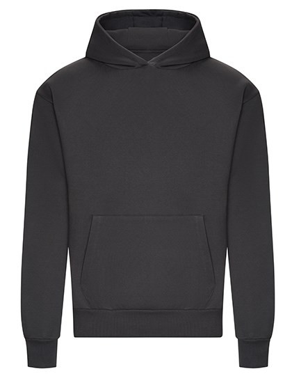 Ringgesponnene Baumwolle / recycelter Polyester | Oversize fit | Schweres Material | Doppellagige Kapuze mit drei Segmenten | Kängurutasche mit Handy-Innentasche | Keine Kordelzüge | Gerippte Ärmelabschlüsse und Saum | Gebürstetes Innenvlies | 100 % Baumwoll-Obermaterial | Abreißetikett