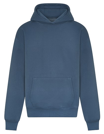 Ringgesponnene Baumwolle / recycelter Polyester | Oversize fit | Schweres Material | Doppellagige Kapuze mit drei Segmenten | Kängurutasche mit Handy-Innentasche | Keine Kordelzüge | Gerippte Ärmelabschlüsse und Saum | Gebürstetes Innenvlies | 100 % Baumwoll-Obermaterial | Abreißetikett