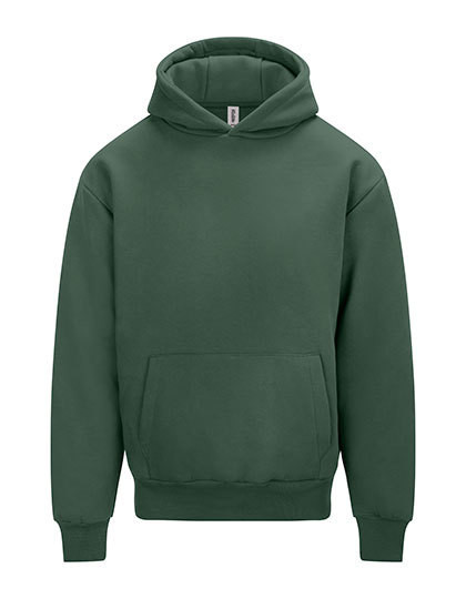 Ringgesponnene Baumwolle / recycelter Polyester | Oversize fit | Schweres Material | Doppellagige Kapuze mit drei Segmenten | Kängurutasche mit Handy-Innentasche | Keine Kordelzüge | Gerippte Ärmelabschlüsse und Saum | Gebürstetes Innenvlies | 100 % Baumwoll-Obermaterial | Abreißetikett
