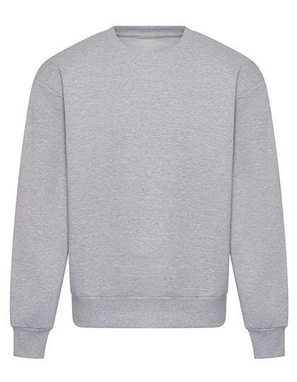 Ringgesponnene Baumwolle / recycelter Polyester | 100 % Baumwoll-Obermaterial | Oversized-Passform | Schweres Material | Rundhalsausschnitt | Gerippter Kragen, Bündchen und Saum | Eingesetzte Ärmel | Gebürstetes Innenvlies | Abreißetikett