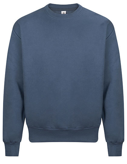 Ringgesponnene Baumwolle / recycelter Polyester | 100 % Baumwoll-Obermaterial | Oversized-Passform | Schweres Material | Rundhalsausschnitt | Gerippter Kragen, Bündchen und Saum | Eingesetzte Ärmel | Gebürstetes Innenvlies | Abreißetikett