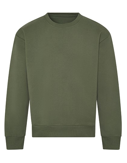 Ringgesponnene Baumwolle / recycelter Polyester | 100 % Baumwoll-Obermaterial | Oversized-Passform | Schweres Material | Rundhalsausschnitt | Gerippter Kragen, Bündchen und Saum | Eingesetzte Ärmel | Gebürstetes Innenvlies | Abreißetikett