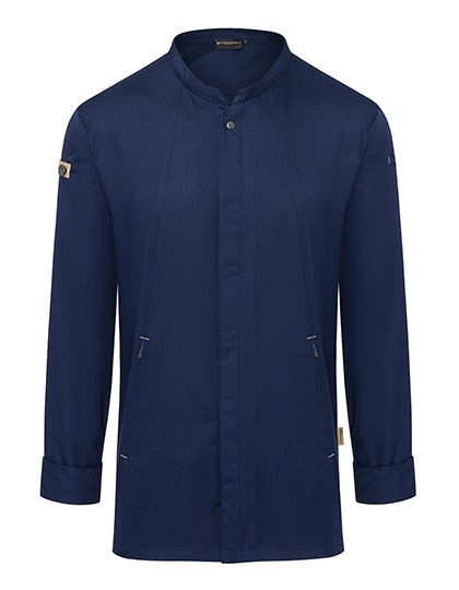 Vorderseite: Köpergewebe, 150 g/m² | Rückseite: Jersey-Piqué, 170 g/m², atmungsaktiv, feuchtigkeitsregulierend | Innovative nachhaltige Kochjacke, die urbanen Style mit natürlichem Flair verbindet | Der Artikel enthält 72% recyceltes Polyester und wurde umweltverträglich und sozial verantwortlich produziert | Leicht tailliert geschnitten | Rückeneinsatz aus Jersey-Piqué sorgt für angenehme Belüftung und erhöhte Bewegungsfreiheit | mit Druckknöpfen zum schnellen Öffnen und Schließen | Ärmelmanschetten mit Druckknöpfen | Vorderteil mit Reißverschlußtaschen und Leistentasche am linken Ärmel | stylische Applikationen aus Kontrastbändern an den Ärmeln und im Nacken für eine urbane Optik | Grüner Knopf zertifiziert, www.g-k.eu/karlowsky