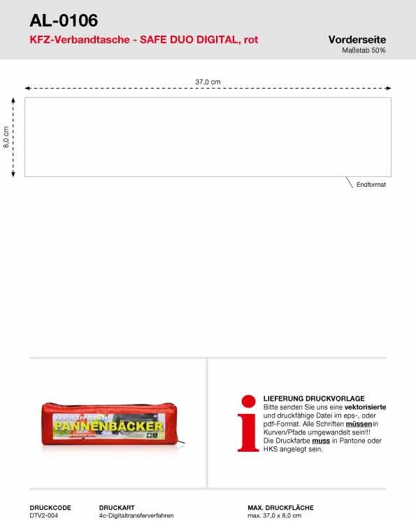 Unsere KFZ-Verbandstasche Safe Duo Digital wird mit einem 4-farbigem Digitaltransfer bedruckt.... mehr