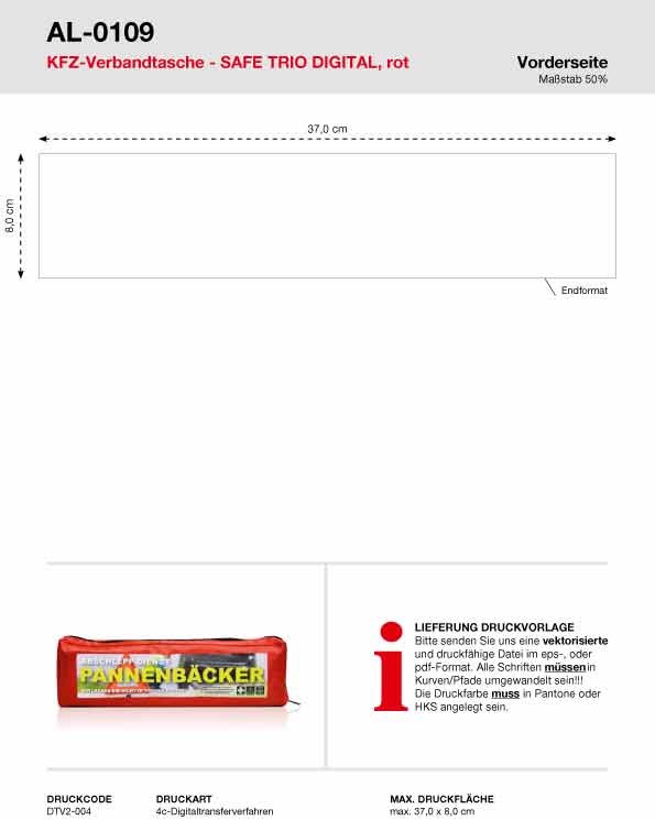 Unsere KFZ-Verbandstasche Safe Trio Digital wird mit einem 4-farbigem Digitaltransfer bedruckt.... mehr