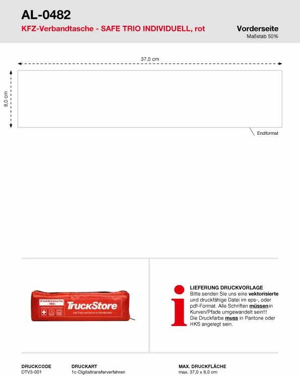 Unsere Kfz-Verbandstasche Safe Trio mit individuellem Motiv ist gefüllt mit Verbandsstoffen nach neuester DIN 13164:2022-02 (inkl. 2 medizinischer OP-Masken), einem Euro-Warndreieck und einer Warnweste nach EN ISO 20471, verpackt in einer Nylontasche mit Reißverschluss. Rückseite mit Klettband versehen. Durch den individuellen Druck erhält jede Tasche einen zusätzlichen Reiz.