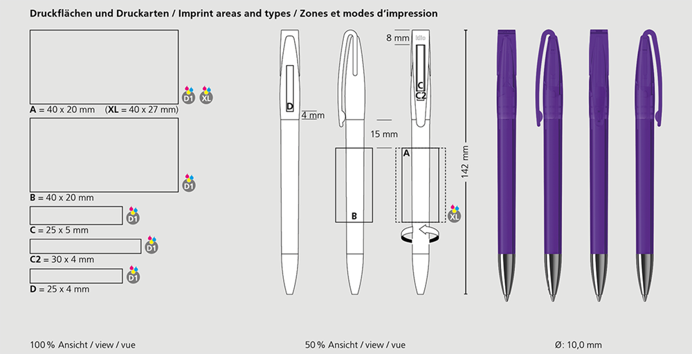 Der Cobra transparent Mn ist ein Drehkugelschreiber. Materialien und Oberflächen: Spitze: Messing vernickelt. Schaft, Oberteil und Klipp: Kunststoff (M-ABS) transparent. Minenröhrchen: Recyceltes Polypropylen (rPP). Standardfarben: Schaft, Oberteil und Klipp: aus 12 Farben kombinierbar. Sonderfarben: ab 5.000 Stück, ab 25.000 Stück ohne PMS-Zuschlag. Standardmine: Silktech L (3.000 m), blau oder schwarz, Mine optional: Silktech XL, Multifill P, Multi-Gel.