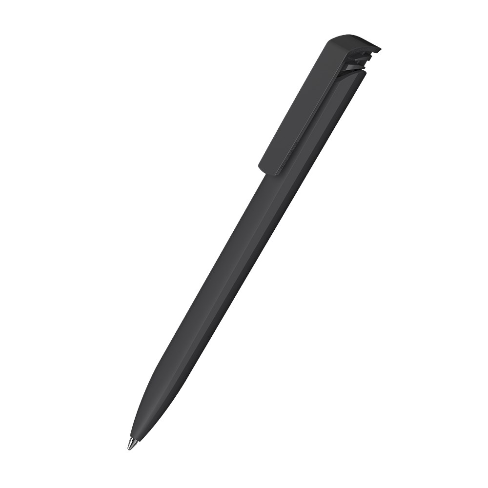 Der Trias softtouch/high gloss ist ein Druckkugelschreiber. Materialien und Oberflächen: Schaft: Kunststoff (ABS), gummierte Softtouch-Oberfläche. Drückerklipp: Kunststoff (ABS) hochglänzend. Minenröhrchen: Recyceltes Polypropylen (rPP). Standardfarben: Schaft und Drückerklipp: aus 14 Farben kombinierbar. Sonderfarben: ab 5.000 Stück, ab 25.000 Stück ohne PMS-Zuschlag. Standardmine: Silktech L (3.000 m), blau oder schwarz, Mine optional: