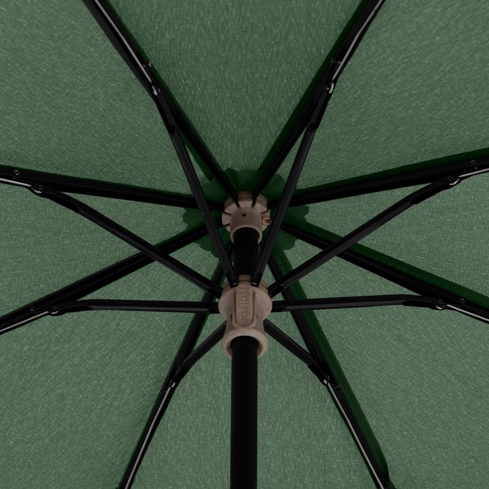 Material: Schirmdach aus recyceltem PET, PFC frei, 3tlg. Stahlstock, 3tlg. Schiene aus Stahl und Fiberglas, Griff aus biologisch abbaubarem Biokunststoff