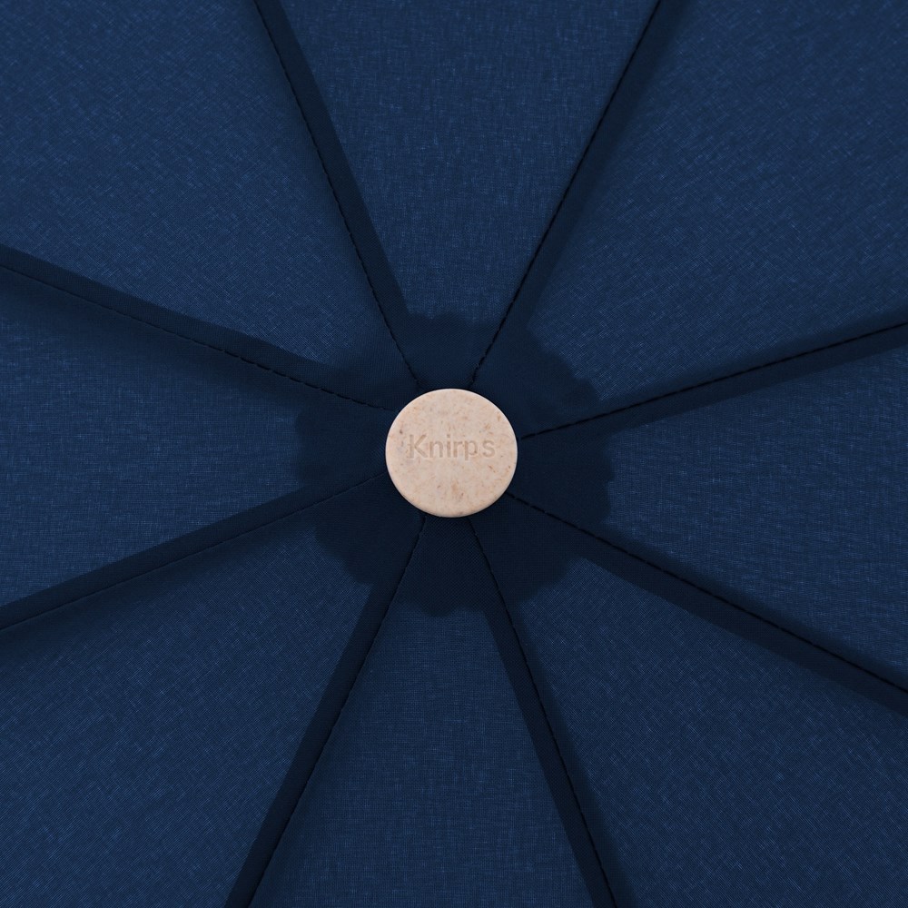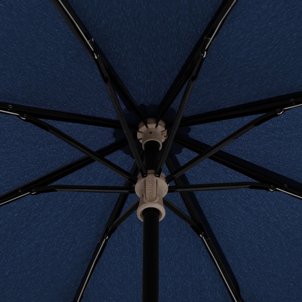 Material: Schirmdach aus recyceltem PET, PFC frei, 3tlg. Stahlstock, 3tlg. Schiene aus Stahl und Fiberglas, Griff aus biologisch abbaubarem Biokunststoff