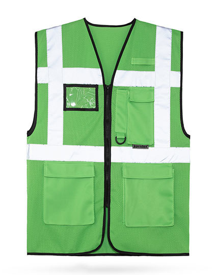 Multifunktionale Mesh Warnweste mit Reißverschluss und Taschen | Auch bei hohen Temperaturen komfortabel durch Mesh-Gewebe und lockerer Passform | Zwei je 5 cm breite Reflexstreifen um den Körper und über den Schultern für eine gute Sichtbarkeit | Ausgestattet mit diversen Taschen sowie einem D-Ring | Zertifiziert nach EN ISO 20471