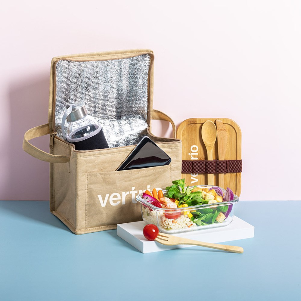 Nature Line Kühltasche mit Fassungsvermögen für 6 Dosen. Aus feuchtigkeitsbeständigem, laminiertem Papier, mit isothermischer Innenausstattung aus Aluminium. Reißverschluss und Tragegriff in passender Farbe, mit Außentasche zum Bedrucken.