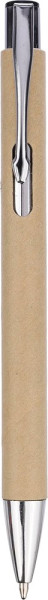 Kugelschreiber aus recyceltem Karton mit verchromten Details. Spitze und Druckknopf aus Kunststoff und Metallclip. Ca. 800 Meter Schreiblänge, Blaue Tinte.